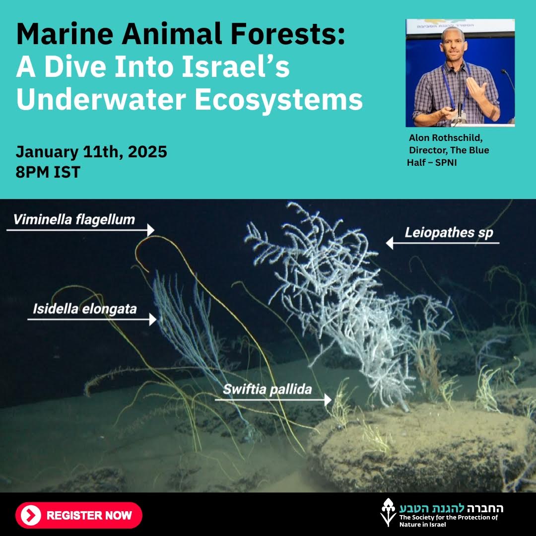 Beneath the surface of the sea are Marine Animal Forests—underwater habitats built by animals like corals, sponges, and tubeworms. These ecosystems support marine life and help keep ocean systems healthy, but many are now in decline. Through The Blue Half, SPNI’s marine conservation program, we are working to protect these underwater forests in Israeli waters. Join Alon Rothschild, Director of The Blue Half, for a conversation about these often-overlooked ecosystems and why they matter.